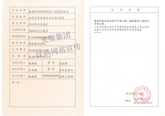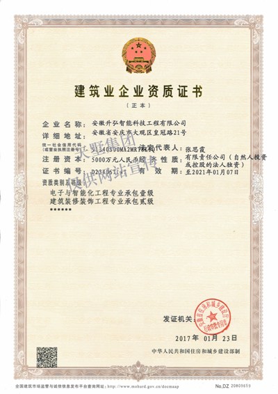 電子與智能化工程專業(yè)承包壹級(jí)資質(zhì)