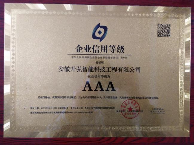 AAA級是企業信用AAA、AA、A、B、C五個等級中的級別上限,有效期3年。此次榮獲該評價,表明集團公司及升弘公司在規范運營、依章納稅以及履約能力、綜合實力、積極維護員工與消費者集體合法權益上等方面得到了第三方權威機構的認可,對進一步提升公司綜合實力與市場競爭力增添了優勢。