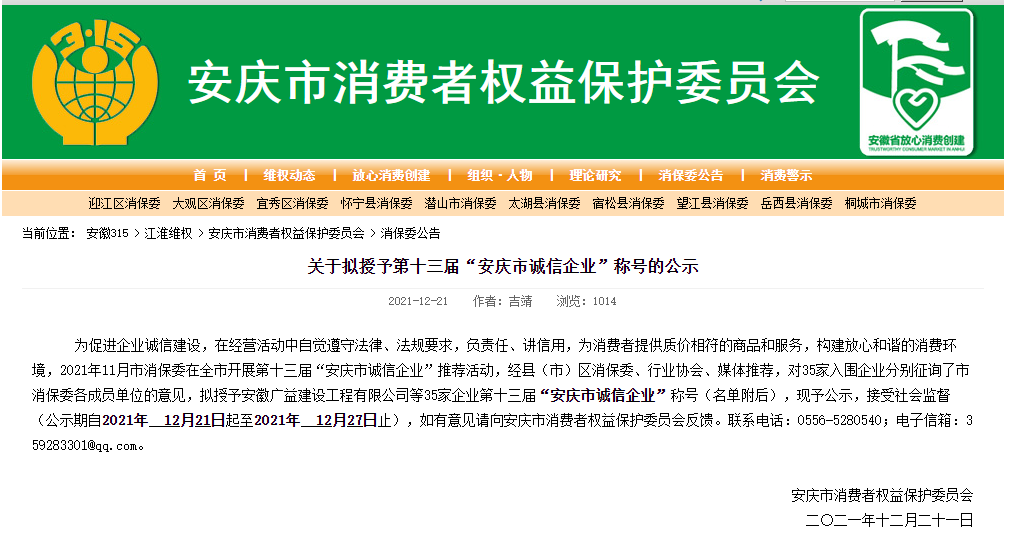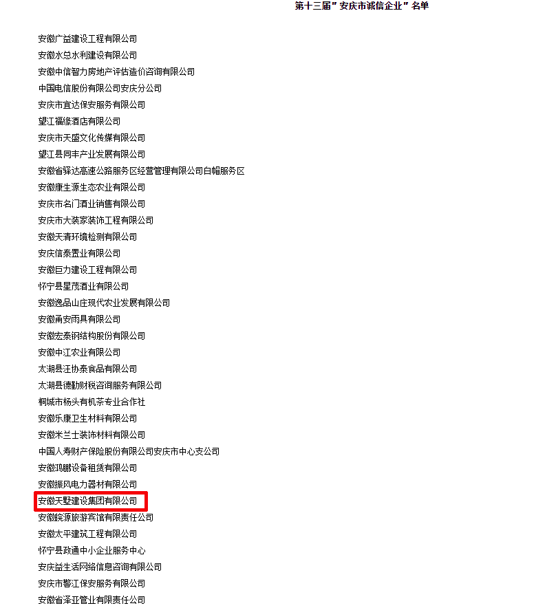 2021年12月21日,天墅集團(tuán)榮獲的“2021年度第十三屆“安慶市誠(chéng)信企業(yè)”稱號(hào),這不僅是同行業(yè)對(duì)天墅2021年工作的認(rèn)可,更是社會(huì)對(duì)天墅近二十年誠(chéng)信之路的見(jiàn)證。