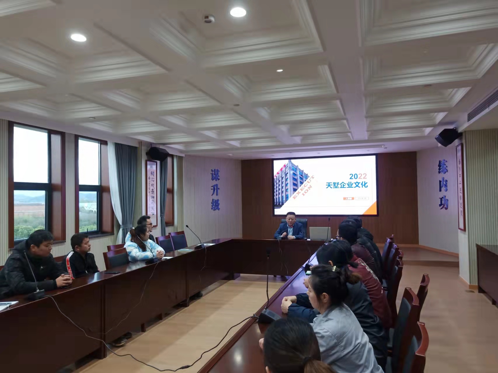 3月17日下午,天墅集團(tuán)人事部組織2022年第一批新入職員工培訓(xùn)會(huì),公司董事長、總經(jīng)理與新入職員工進(jìn)行集中座談,朱總作了言辭懇切的寄語發(fā)言。