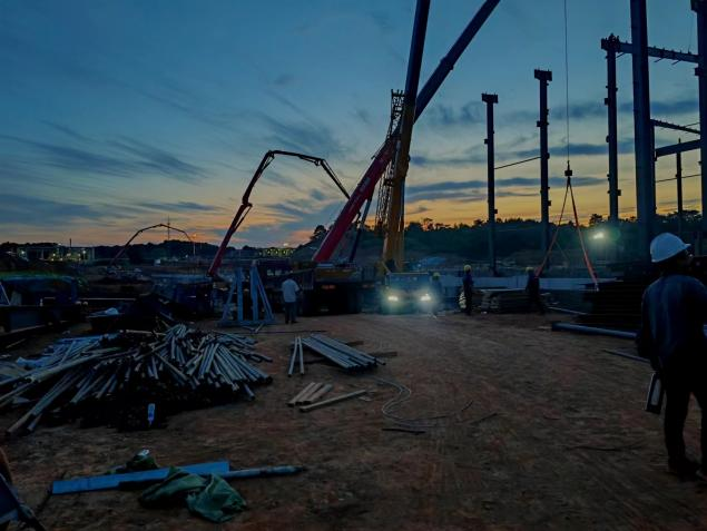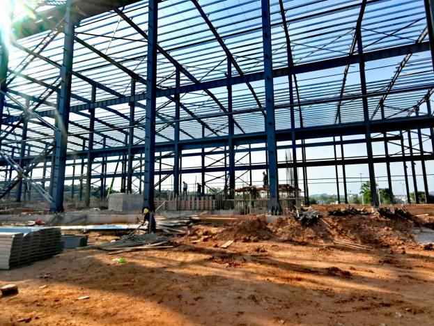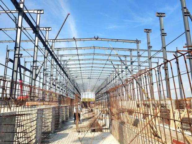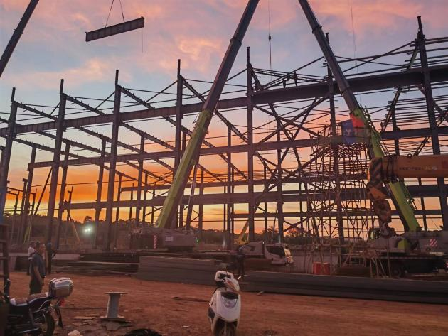 話不多說,先上圖,這是8月初的項(xiàng)目現(xiàn)場,當(dāng)時(shí)還只有幾根“孤零零”的鋼結(jié)構(gòu)柱子立在現(xiàn)場↓↓↓