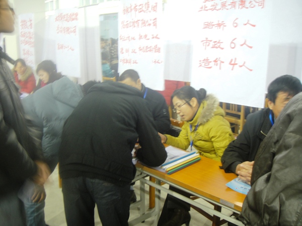 2009年12月12日,安徽交通職業(yè)技術(shù)學(xué)院舉辦“2010屆畢業(yè)生校園招聘會”,該院畢業(yè)生一直以來因其基礎(chǔ)知識扎實,動手能力強受到我公司人力資源部門青睞。為給畢業(yè)生一個放飛夢想、暢想青春的舞臺,我公司非常重視這次招聘會,欣然應(yīng)邀參會選拔優(yōu)秀人才。本次招聘主要是路橋、造價和市政專業(yè)人員。招聘會上學(xué)生們氣氛活躍,咨詢和報名非常踴躍。