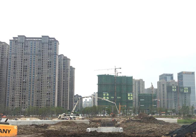 一進入施工現場,偌大的施工場景令人振奮: 十多輛工程機械緊張作業,挖掘機、推土機的轟鳴聲震耳欲聾、重型卡車來回穿梭蕩起滾滾煙塵,工人緊張有序的加緊施工,茫然不覺外界的嘈雜。