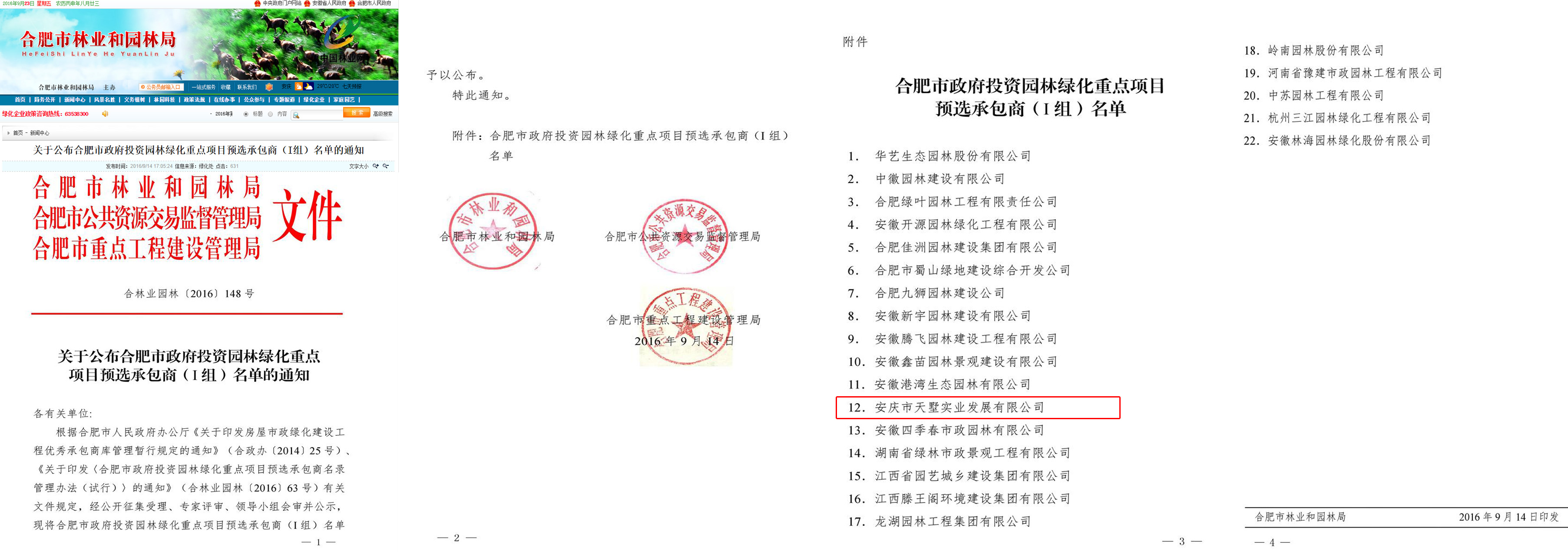 9月14日,合肥市林業(yè)和園林局網(wǎng)公布《合肥市政府投資園林綠化重點(diǎn)項(xiàng)目預(yù)選承包商名錄(I組)》,我司榮膺上榜,本次合肥市在全國(guó)范圍內(nèi)征集預(yù)選承包商,僅有22家入選,我司是安慶市唯一成功入選的企業(yè)。