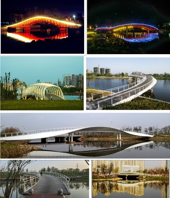 新河景觀橋梁造型獨特,橋身、結構和周圍景觀協調一致,河流、藍天、公園、 城市和諧悅色,人文美和自然美融為一體。每當夜幕來臨,橋身、霓虹燈光交互輝映,猶如一道道絢麗的彩虹,嵌鑲在美麗的新河上。美麗的宜城東部新城區再添新彩!