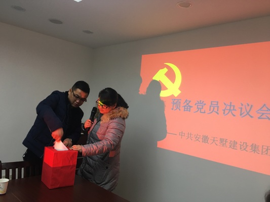 大會在莊嚴的國歌聲中拉開了序幕,根據(jù)大會議程,張義、谷同伍兩名同志首先向大會宣讀《入黨志愿書》,隨后其入黨介紹人分別對該兩名發(fā)展對象在考察期內(nèi)的培養(yǎng)和考察情況向大會作了匯報。接著,黨支部書記張思霞同志向全體黨員匯報兩位發(fā)展對象的綜合政審情況并提出發(fā)展意見。經(jīng)過13名參會黨員的討論和投票表決,張義、谷同伍兩名同志獲得全票通過。集團黨支部正式接收張義、谷同伍兩名同志為預備黨員,上報經(jīng)開區(qū)黨委審批決議。